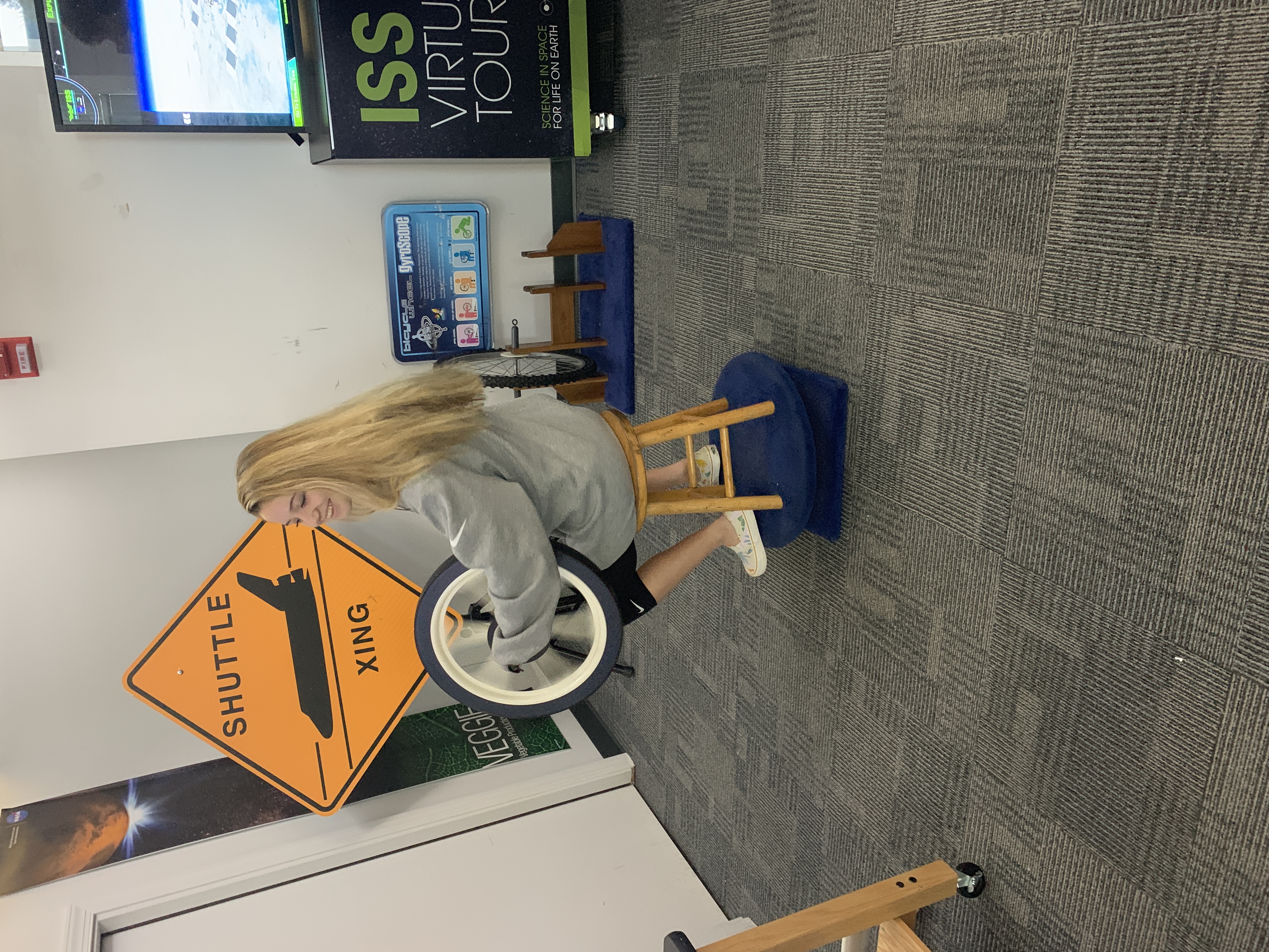 ![]() | ... and as you tilt the bicycle wheel, momentum spins your stool Medium picture [80 KB] Full picture [4750 KB] | ![]() | ||