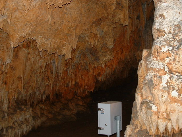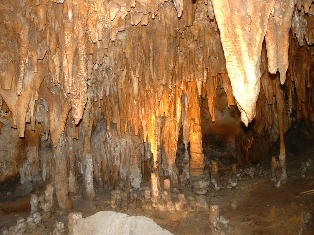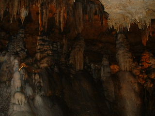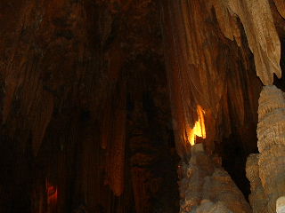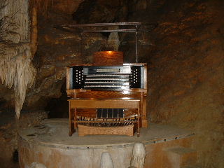 ![]() | The organ is connected to little hammers on formations all over the caverns, and wired to speakers back to the area around the organ. Full picture [61 KB] | ![]() | ||