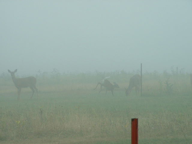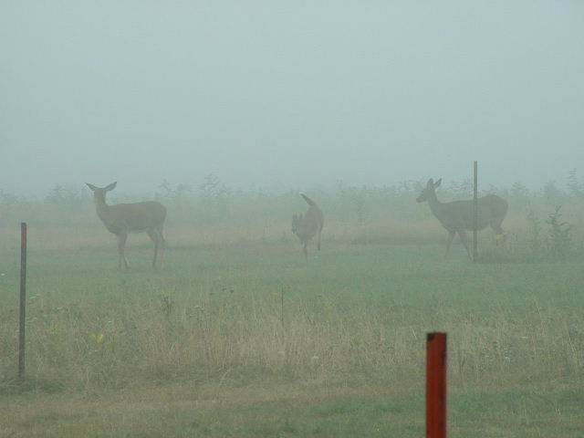 ![]() | Three deer; the baby is running back and forth looking at us Full picture [20 KB] | |||